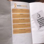No verso do folder os alunos desenharam sobre segurança no trânsito, após o término, receberam um laço amarelo, símbolo do Maio Amarelo e levaram para casa para compartilhar com a família.