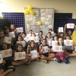 No dia 09 de maio de 2019, os vinte e dois alunos do 4º ano B, da Escola Municipal Paul Harris, Joinville – SC, realizaram uma atividade sobre a Segurança no Trânsito, receberam um folder com explicação sobre o Maio Amarelo e uma frase: Um trânsito mais humano começa com as escolhas que a gente faz.