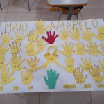 Na aula de hoje a professora Andrea trabalhou com seus alunos do 1º Ano A, o tema Maio Amarelo.