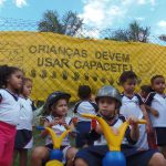 Na ocasião as crianças abordavam os motoristas e explicavam sobre os cuidados no trânsito, confeccionaram ainda um cartaz onde dizia “crianças devem usar capacete”, uma vez que o número de pequenos que são transportados em motos – sem capacete, na escola é muito grande.