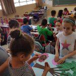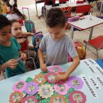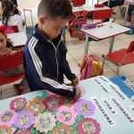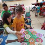 Para finalizar, desenvolveram uma atividade coletiva transformando retalhos num lindo painel.