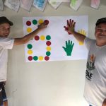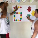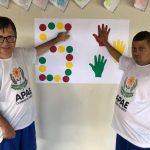 A professora de informática da Apae -Casimiro de Abreu juntamente com a estagiária de pedagogia , confeccionaram um mural com as mãos e círculos nas cores do semáforo, trabalhando cores, atenção, concentração, números e o significado das cores do semáforo, além de alertar sobre o toque no lugar correto .