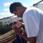 Pedimos para nos mostrar como preparar a terra para o plantio da mudas, depois pedimos que nos fornecesse um pouco da terra para que pudéssemos plantar a nossa sementinha, tendo como objetivo conscientizar os alunos que devemos cuidar da nossa natureza, não cortando as árvores e sim plantando e preservando as que estão a nossa volta.
