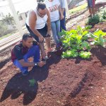 Fomos até a horta funcional da escola juntamente com o responsável que cuida da mesma.