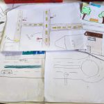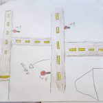 Depois das discussões realizadas em sala sobre os cuidados com o trânsito, a importância das placas, os alunos fizeram um mapa do trajeto de sua casa até a escola, apontando as placas que encontram no caminho, lombadas, faixas de pedestres entre outros.