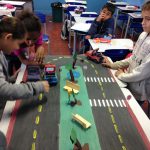 Os alunos do 4 e 5 ano da professora Lucimar construíram uma maquete representando uma cidade com as sinalizações e também com a devida atenção com a área verde. Essa construção contou com a ajuda de todos os alunos, desde a pintura da maquete como também dos carrinhos utilizados para brincar.