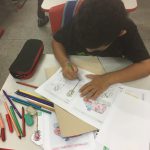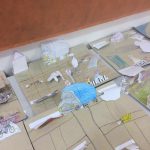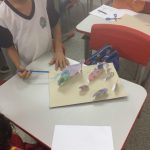 Desenharam as ruas no papel cartão e colaram as imagens formando a maquete do trânsito. Ao concluírem, fizeram a exposição.