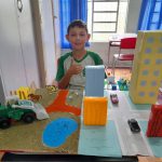 Foi realizado um trabalho sobre o meio rural e o meio urbano, onde cada aluno construiu uma maquete representando o meio Urbano e o meio Rural, cada aluno usou o material que tinha em casa para desenvolver a atividade que aprenderam em sala de aula.