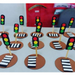 Nessa aula os alunos realizaram a construção de maquetes individuais de um mini semáforo. Foram utilizados os seguintes materiais: E.VA Marrom, Preto, Branco, Vermelho, Amarelo e Verde e palitos de sorvetes.