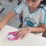 Realizamos então a dobradura de marcador de páginas e cada educando representou um personagem…