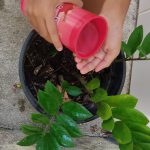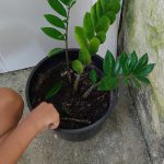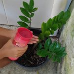 Hoje a Dafny cuida da Zamioculca, coloca água toda sexta-feira e todos os dias tira ela durante o período de aula, para pegar um ar, do lado de fora da sala.