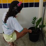 A Zamioculca foi aprovada pela turminha e no dia que resolvi levá-la foi o Dia Internacional da Mulher e nesse dia só uma das meninas frequentou a aula, por isso foi ela que ficou responsável pela plantinha.