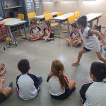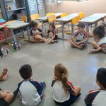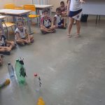 Nessa atividade, as crianças brincaram de matar o mosquito. O jogo de boliche foi confeccionado com garrafa pet e com uma bola feita de meias velhas. As crianças gostaram muito da brincadeira. Antes de brincarem, foi feita uma roda de conversa para falar sobre a dengue.