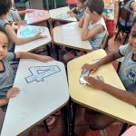 DURANTE O PROJETO DIA DA ÁGUA, OS ALUNOS PARTICIPARAM DE UMA ATIVIDADE ENVOLVENDO MATERIAL RECICLADO COMO O PAPEL, ONDE MONTARAM UM QUEBRA-CABEÇA COM A QUANTIDADE SUFICIENTE DE GOTAS