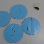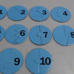 Material pedagógico de matemática confeccionado com papelão, revestido com papel dobradura, recortado e colado cada numeral relacionado à sua quantidade. É uma atividade que pode ser desenvolvida com alunos de 1º ANO. As peças podem ser espalhadas de forma que a criança possa ser desafida a encontrar o numeral que relaciona-se à sua quantidade.