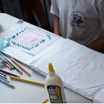 Entregamos os cadernos de desenho aos alunos com a figura geométrica – quadrado – e pedimos aos alunos que pegassem os papeis amassados, fazendo pequenas bolinhas para contornar o quadrado, terminando essa fase, os alunos recortaram os pedaços de papelão imitando a figura geométrica, com auxilio dos professores.