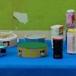 Confeccionamos instrumentos de percussão com materiais recicláveis.