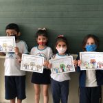Os alunos do 1° ano do fundamental iniciaram um caderno com diversas atividades sobre o meio ambiente. Conversaram sobre o tema, o que já sabem, o que querem aprender, quais as curiosidades sobre o assunto, suas impressões, reflexões, opiniões; assistiram um vídeo sobre o meio ambiente. Realizaram a pintura da capa do caderno sobre o meio ambiente.