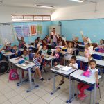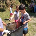 Cada turma de 2º ano ficou responsável por uma ação: rastelar o lixo, recolher o lixo e entregar panfletos aos moradores no entorno da escola conscientizando sobre a importância de deixar o local limpo e descartar os materiais recicláveis corretamente.