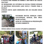 Iniciamos o Projeto Meio Ambiente – Reciclar é Preciso, devido um problema que existe há anos no entorno da nossa escola. A lixeira comunitária de uma rua próximo ao estacionamento da escola, sempre está cheia. Os moradores tem duas opções de separar o “lixo”, material reciclável e levar para nossa escola José Pereira de Borba, pois a escola é um ponto de coleta seletiva ou entregar diretamente á cooperativa que passa com o caminhão uma vez por semana. Mas esses moradores não tem a consciência sobre a importância de reciclar. Os cachorros espalham todos os “lixos” que são colocados na lixeira no estacionamento da escola.