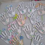 Falou sobre a importância do meio ambiente, fez leitura das dicas de cuidado e preservação, por último a turma produziu a atividade das mãozinhas com as dicas de conservação do meio ambiente.