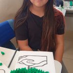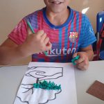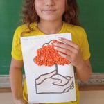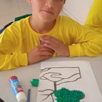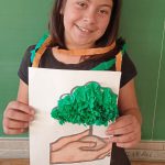 Como atividade prática os alunos colaram papéis na árvore.