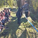Para realizar a atividade, no meio ambiente, utilizamos duas árvores para fixação do slackline e adaptamos as regras para as crianças, com objetivo de atravessar de um lado para outro com ajuda de um colega.