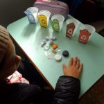 Através de uma atividade xerocada, foi apresentado as lixeiras e as cores que