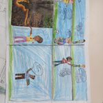 Com a turma do quarto ano foi elaborada uma história em quadrinhos em duplas, com o auxílio de recortes para a ilustração.