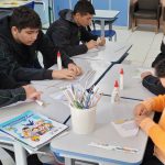 Reutilização de materiais alternativos, caixas de leite e revistas usadas, para a confecção de enfeites juninos, enfatizando a importância da Reutilização de materiais para a preservação do meio ambiente.
