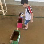 OS RECURSOS UTILIZADOS FORAM CAIXAS ENCAPADAS COM PAPEL DAS CORES DE INDICAÇÃO, E OBJETOS (LIXO) COLETADOS PELAS CRIANÇAS, PARA JOGAR EM CADA LIXEIRA INDICADA PELO PROFESSOR, PAPEL, VIDRO, PLÁSTICO, E METAL, PARA SEREM REAPROVEITADOS.
