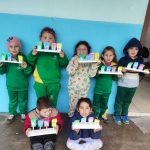 Também falamos sobre a importância das árvores para o nosso meio ambiente, e colamos feijões em cima do desenho de uma árvore .