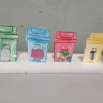 Na sequência colorimos as lixeira verde, vermelha , amarela e azul , como também recortamos e colamos imagens correspondentes a cada uma delas (vermelho – plástico , azul – papel , verde – vidro e amarelo – metal).