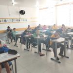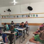 Em seguida, os estudantes realizaram uma interpretação escrita, respondendo a questões que exigiam observação, inferência e compreensão global do texto.