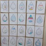 Em seguida cada um escolheu uma atividade diária que necessite da água para ser realizada e escreveram e  desenharam a utilidade na gotinha.