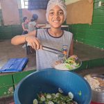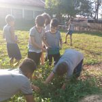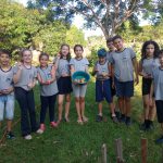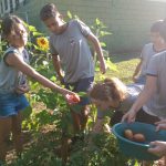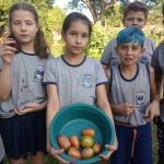 Após esse momento, eles foram a horta da escola e colheram os tomates cultivados, levando-os para serem utilizados na salada, servida no almoço da escola.