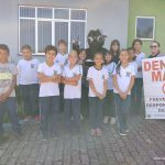 Os alunos entregaram panfletos aos munícipes com informativos sobre os cuidados e a prevenção contra a dengue.