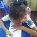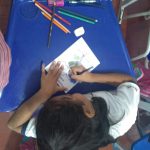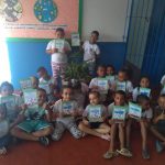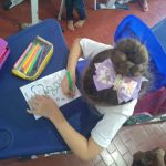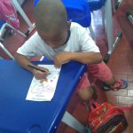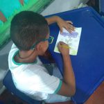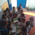 Ação: Plantamos a semente de feijão no algodão em um copo transparente. A medida que a semente foi germinando, fomos fazendo registros e desenhos das etapas em algumas folhas. Depois de certo tamanho, plantamos a mudinha no pátio da escola.