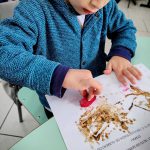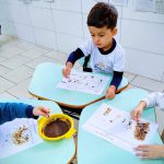 Pensando em reaproveitamento e uso consciente dos elementos da natureza, realizamos uma pintura com terra e beterraba. Exploraram texturas e cores diferentes. Na terra utilizamos cola para fixa-la melhor na folha. A experiência foi interessante e disseram que iriam repetir em casa.