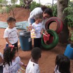 Os alunos do jardim realizaram no dia de hoje uma simulação de atitudes que devemos praticar em nosso dia-a-dia para que possamos manter o meio ambiente limpo e nossa saúde protegida da Dengue. Realizamos primeiramente a leitura do panfleto sobre os cuidados para não deixar água parada. Em seguida realizamos de forma lúdica todas as orientações sobre como evitar água parada.