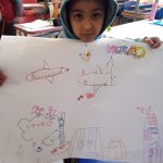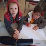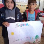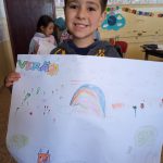 Após um momento de conversa, os alunos fizeram um cartaz destacando o clima e as estações do ano, assim como o meio ambiente e as atitudes corretas para a preservação da natureza.