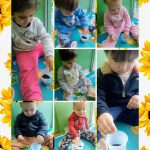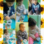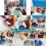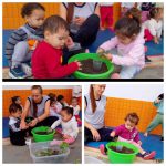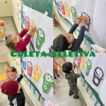 Primeiramente, as professoras reuniram as crianças em roda e, de forma simples, falaram sobre cuidar da natureza, mostrando que o lixo pode ser separado para ajudar o planeta. Em seguida, cada criança foi convidada a explorar os materiais, manuseando, batendo, empilhando e observando suas formas, cores e sons.