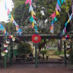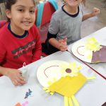 APROVEITANDO O TEMA JUNINO, A PROFESSORA EXPLICOU AOS ALUNOS COMO FAZER ENFEITES E ADEREÇOS UTILIZANDO MATERIAL RECICLÁVEL.