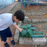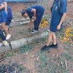 A educadora realizou uma aula prática sobre o estudo do solo. Os alunos foram a parte externa da escola, onde juntamente com a professora estudaram e analisaram o solo e suas características.