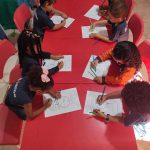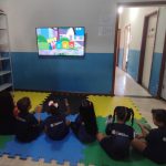 Após assistir ao desenho, as crianças fizeram pinturas para a construção de um cartaz sobre sustentabilidade. Porque preservar o meio ambiente também é coisa de criança.