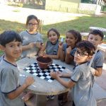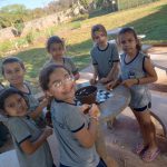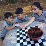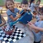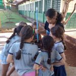 Após uma roda de conversa sobre alimentação saudável na escola, foi apresentado aos alunos a implantação de rúcula.