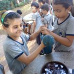 Foi apresentado o papel- semente e todos tiveram a oportunidade de conhece-lo e manuseá-lo, colocando em vasos para a sua organização.