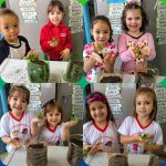 Fizemos uma roda de conversa trocando informações sobre o assunto (planta), falamos sobre a importância de plantar o próprio alimento e sobre os cuidados que devemos ter com as plantas.