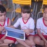 As crianças participaram ativamente, demonstrando interesse em falar sobre o que já viram em casa e na rua.