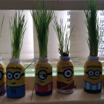 As crianças plataram alpiste para nascer os “cabelinhos” dos Minions e de forma divertida puderam